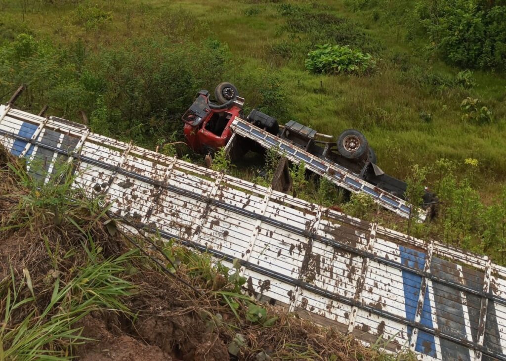 Um acidente de trânsito foi registrado neste sábado (14) na BR-364, no trecho entre o Gregório e o município de Tarauacá. O motorista de um caminhão boiadeiro perdeu o controle do veículo, saiu da pista e caiu em um barranco às margens da rodovia.