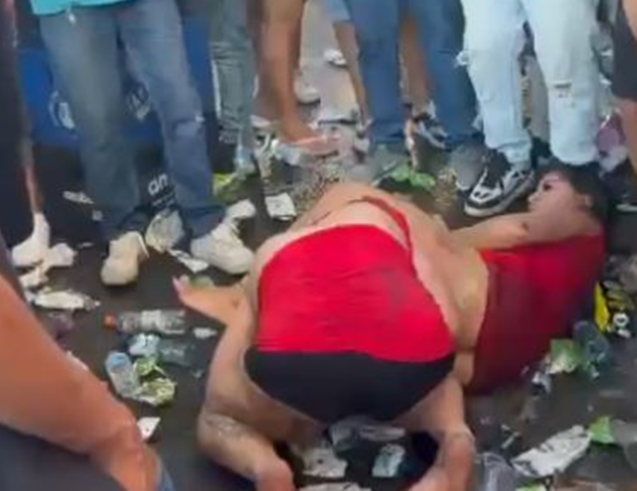 Imagens gravadas por foliões que presenciaram a briga, mostram as duas mulheres no chão, enquanto trocam agressões em meio a sujeira.
