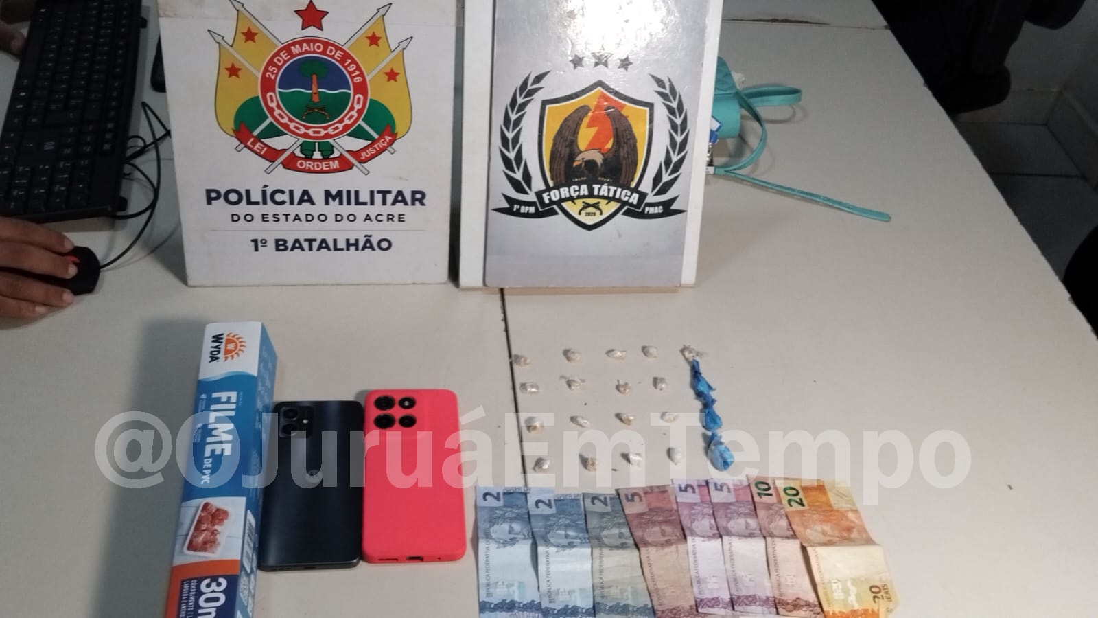 Um adolescente de 17 anos foi apreendido por policiais da Força Tática do 1º Batalhão da Polícia Militar no início da noite desta quinta-feira (5), acusado de ato infracional análogo ao crime de tráfico de drogas, no bairro Novo Esperança, em Rio Branco.