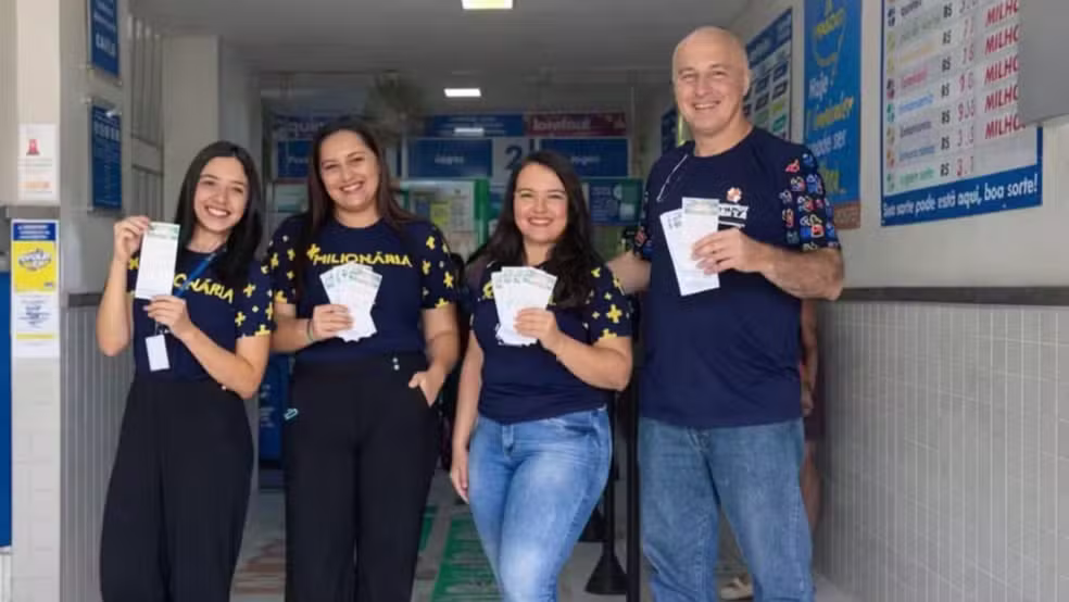 O bolão sorteado foi feito pela própria lotérica, em modalidade na qual cada participante compra uma cota sem precisar conhecer os outros apostadores.