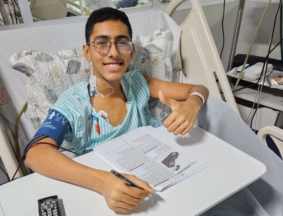 Como não tinha condições de realizar a prova no local originalmente designado, a família precisou entrar na Justiça para que o jovem pudesse fazer o Enem em São Paulo, dentro do hospital, seguindo todos os protocolos médicos.
