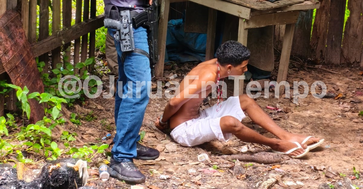 A Polícia Civil de Brasiléia prendeu, por volta das 13h desta quinta-feira (5), o jovem Mateus da Silva Conceição, de 18 anos, conhecido como “Matheuzinho”. Ele estava foragido da Justiça e possuía um mandado de prisão em aberto por participação em um homicídio ocorrido em novembro de 2025 no município.