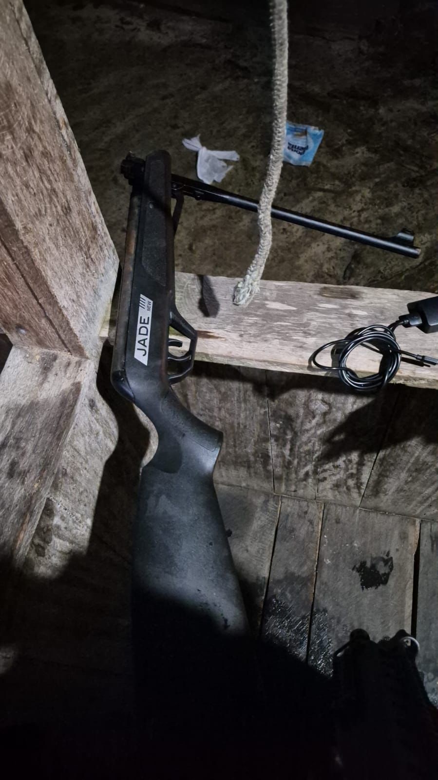 Durante a operação, os policiais realizaram o cerco ao imóvel indicado e conseguiram abordar os suspeitos. No interior da residência, foram apreendidas duas armas de fogo de uso restrito, sendo uma pistola e um rifle adaptado para calibre .22, além de grande quantidade de munições de diversos calibres, evidenciando o potencial bélico do grupo.