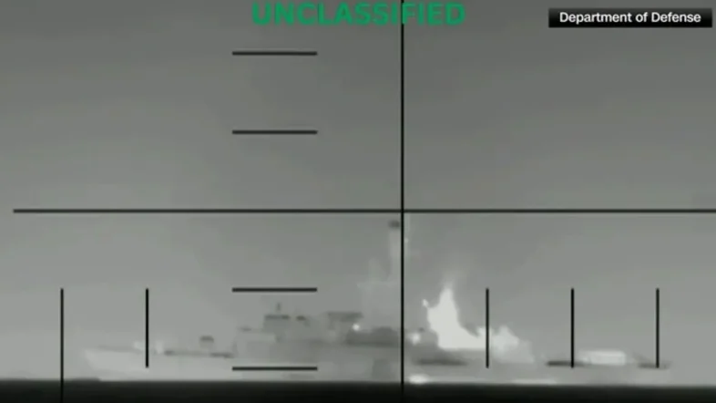 “Um submarino americano afundou um navio de guerra iraniano que achava estar seguro em águas internacionais. Em vez disso, foi afundado por um torpedo”, declarou o chefe do Pentágono à imprensa.