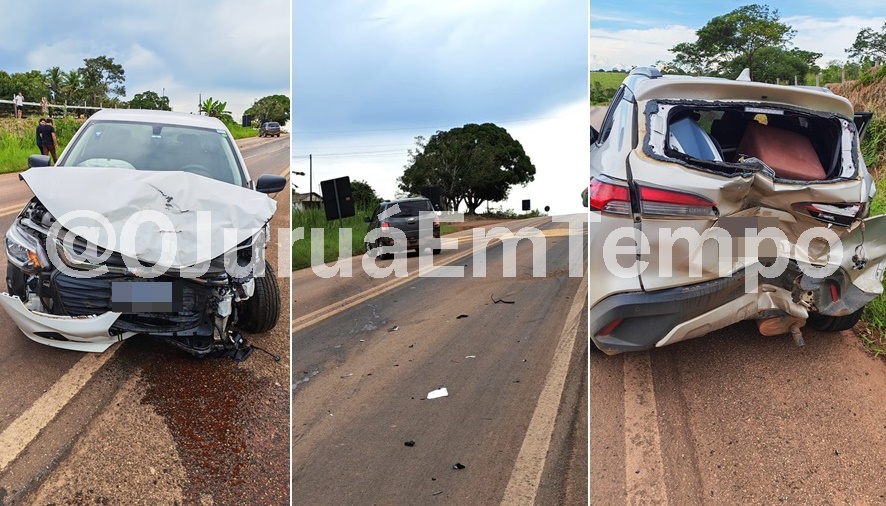 Registros feitos no local mostram a gravidade do acidente. O Corolla Cross teve a traseira bastante danificada, enquanto o Onix ficou com a parte frontal destruída. Destroços ficaram espalhados pela rodovia.
