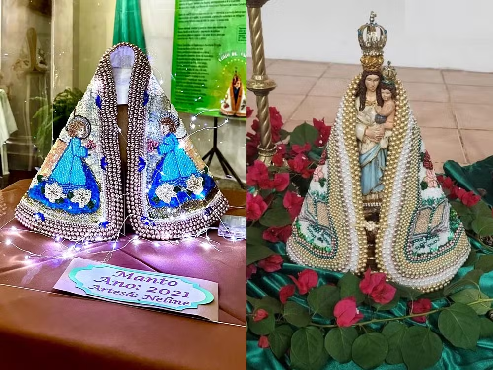 Neline contou ao g1 que o trabalho começou ainda em 2001, quando produziu o primeiro manto. Após um período de pausa, ela retomou a atividade em 2014 e, desde então, passou a confeccionar a peça todos os anos. “É um amor muito grande, incondicional, e não posso viver sem Maria”, explica.