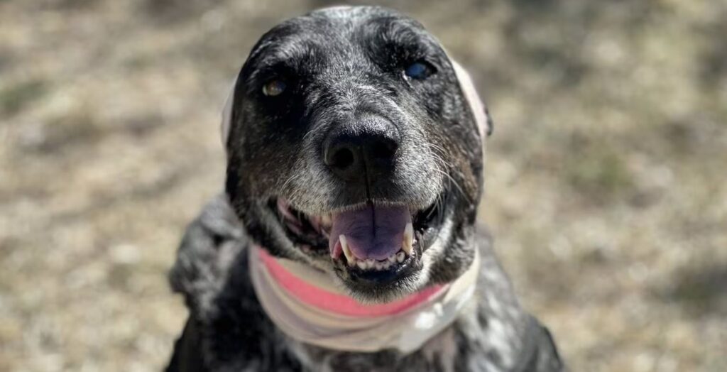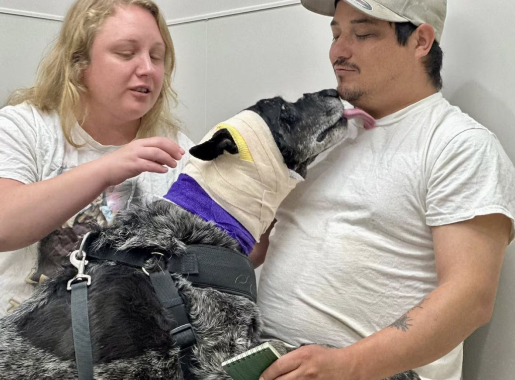 Uma cadela idosa e parcialmente cega enfrentou um urso ao tentar proteger sua família, que vive em uma fazenda em Cordova, no estado americano do Novo México.