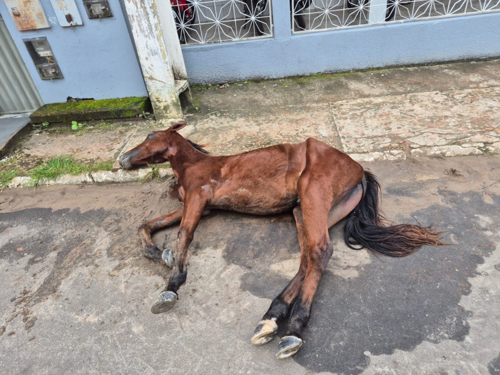 Um cavalo em estado grave foi encontrado caído na Avenida Getúlio Vargas, no centro de Guajará, na manhã desta sexta-feira, 24 de abril. O animal, visivelmente debilitado e com sinais de desnutrição, chamou a atenção de moradores e pedestres que passavam pelo local.