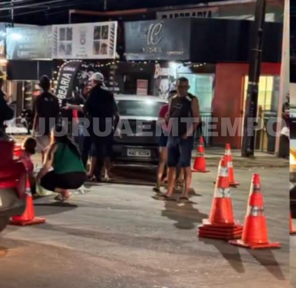 De acordo com informações apuradas no local, o condutor de um veículo modelo Toyota Etios, de cor cinza, estava parado às margens da via quando tentou realizar uma conversão à esquerda em local proibido. Durante a manobra, ele não percebeu a aproximação de uma motocicleta que trafegava no sentido centro/bairro.