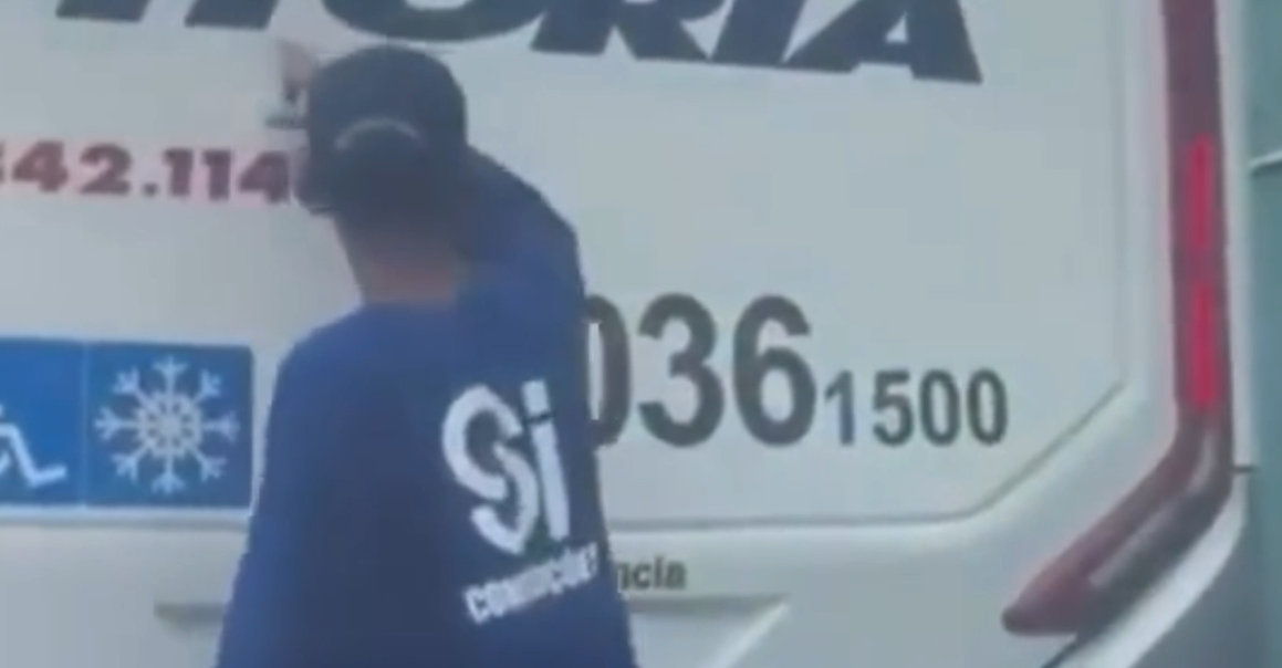 Durante o sinal fechado, ele aproveitou a pausa no trânsito para ensinar uma criança que o acompanhava em um carrinho de reciclagem. Usando o letreiro de um ônibus do transporte metropolitano como recurso didático, o homem começou a soletrar a palavra “Vitória”, incentivando o pequeno a repetir e compreender a formação das letras.