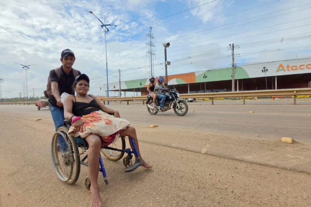 A greve dos ônibus de Rio Branco impõe situação extrema a moradores de bairros periféricos. Nesta quarta-feira (22), Maria Sueli, moradora do polo Belo Jardim, percorreu mais de 20km em uma cadeira de rodas com destino ao Hospital de Urgência e Emergência de Rio Branco (Huerb), conhecido como Pronto-Socorro, para buscar medicação para um problema na coluna. O casal saiu de casa às 5h da manhã.